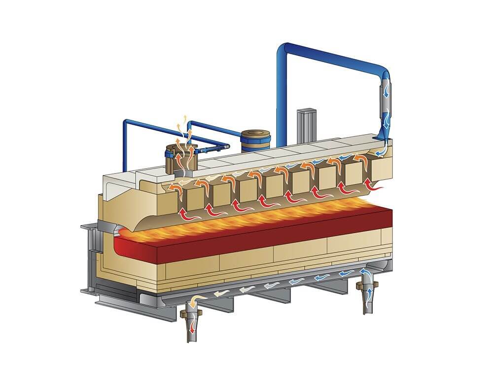 • Critical components for good forehearth management are pre-assembled and installed in a dedicated unit, usually positioned in an area less exposed to the heat coming from forehearths and w/e.